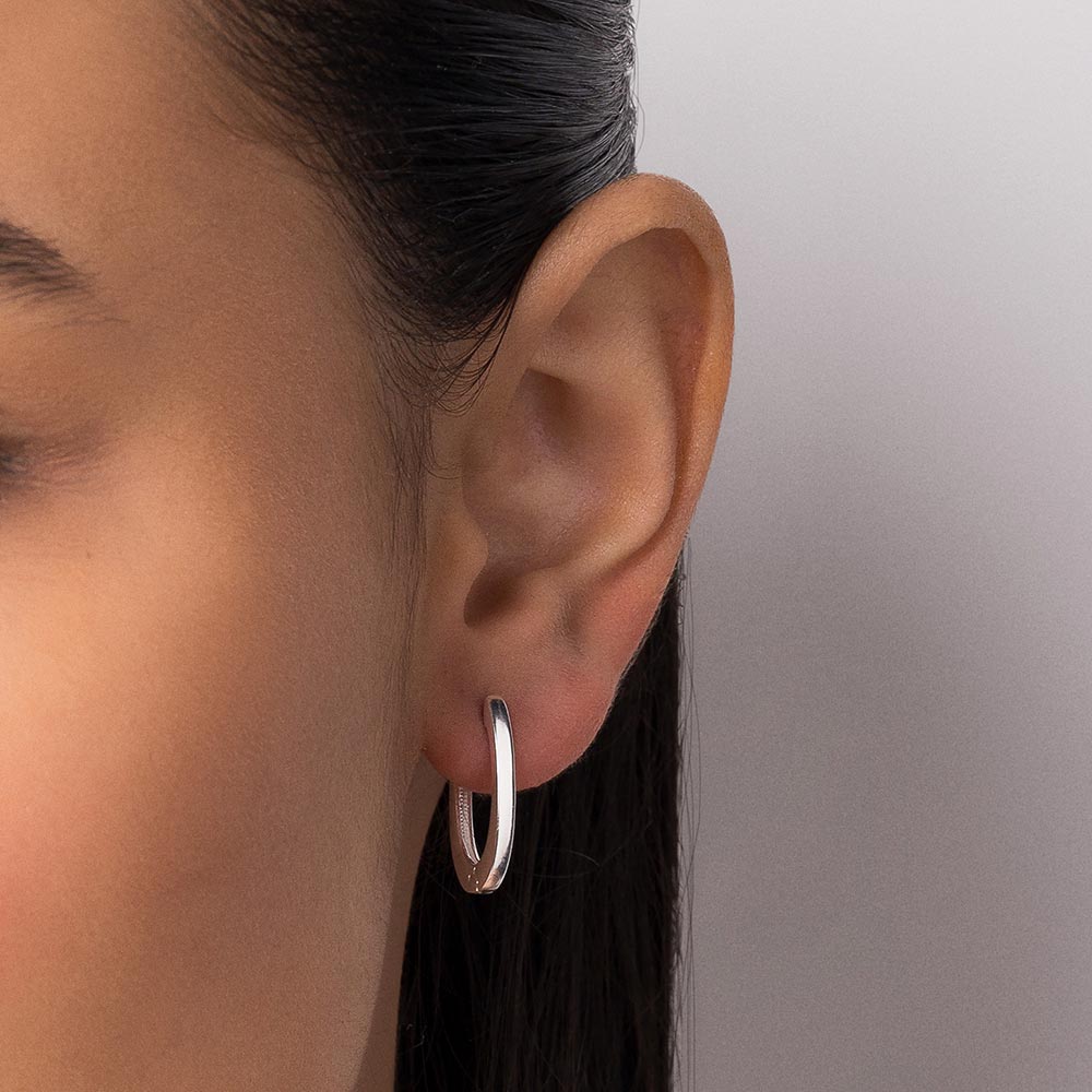 Esgotado!Brinco meia argola retangular de prata 925 820142 Rommanel