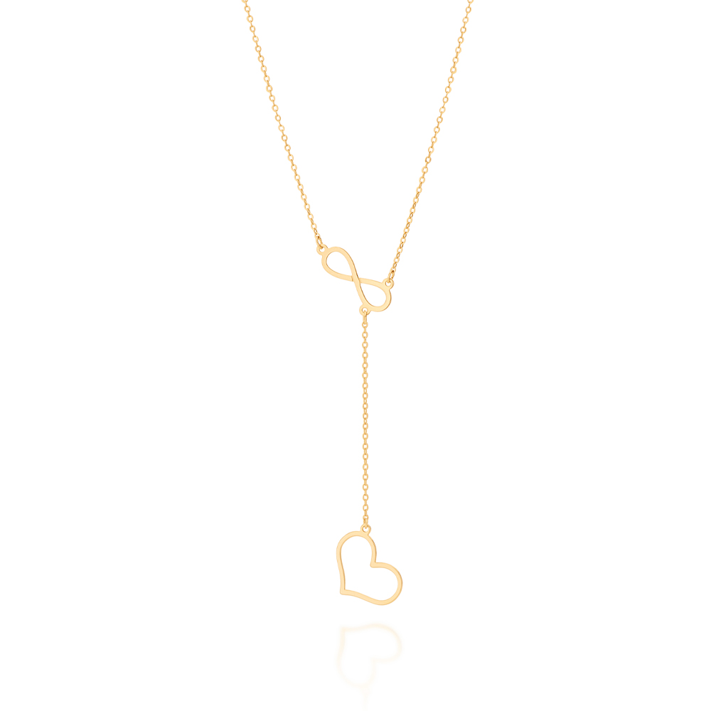 Colar Gravata Rommanel 532068 Folheado Infinito Coração