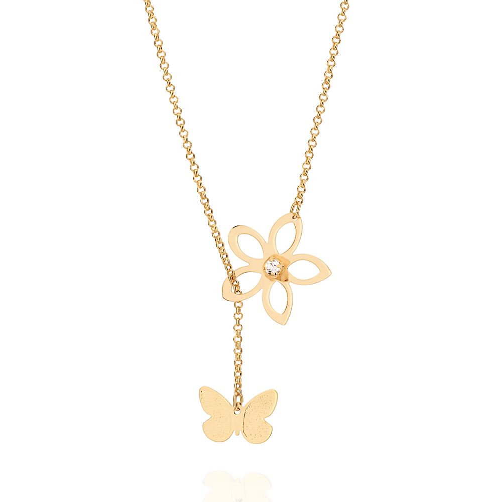 Gargantilha Com Borboleta Banhada A Ouro Rommanel 532561