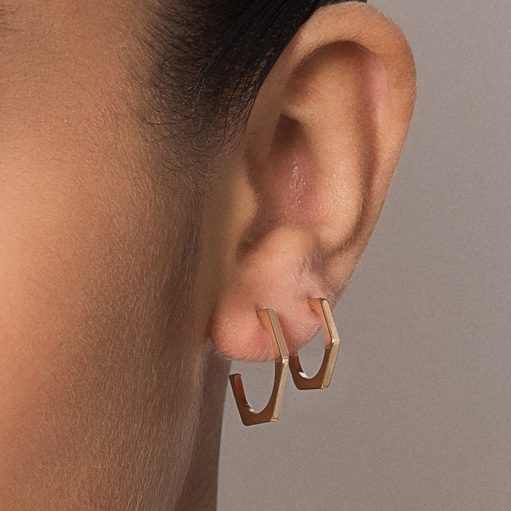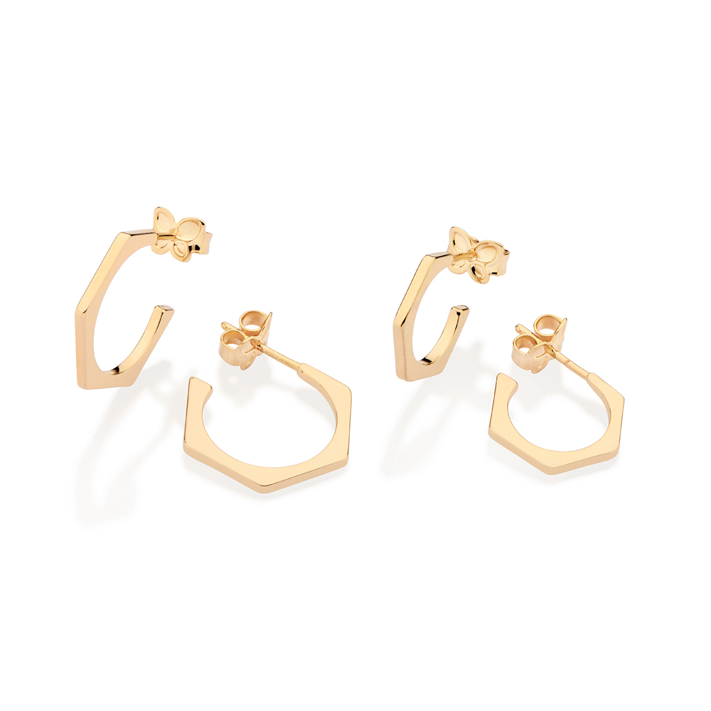 Kit brinco angular composto por 1 par meia argola de 1,60 cm x 1,80 mm e 1 par meia argola de 1,30 cm x 1,40 cm. med. 1,30 cm x 1,40 cm / 1,60 cm x 1,80 cm (joia licenciada coleção giovanna antonelli