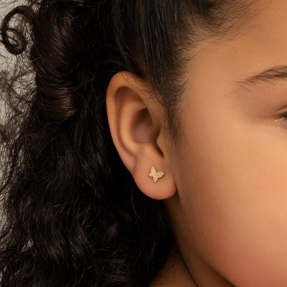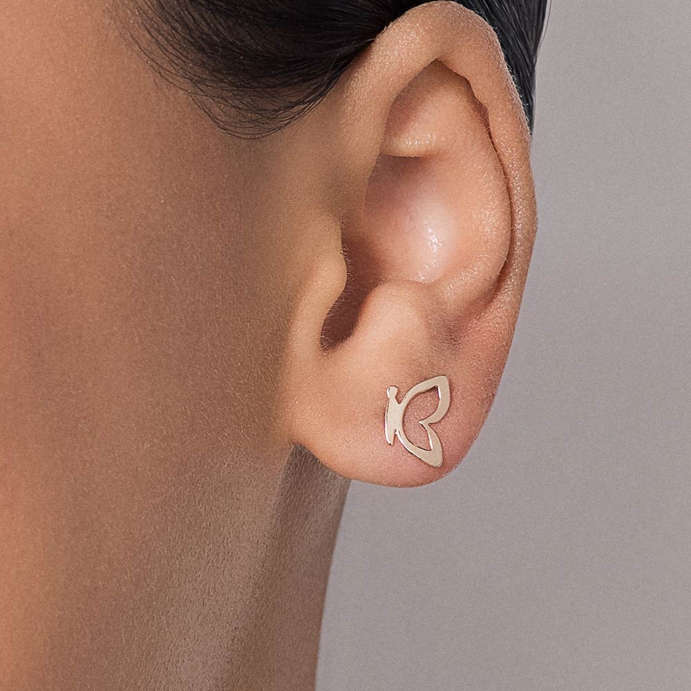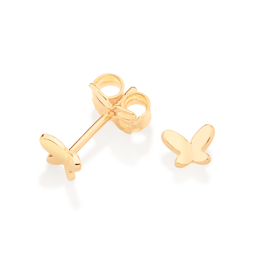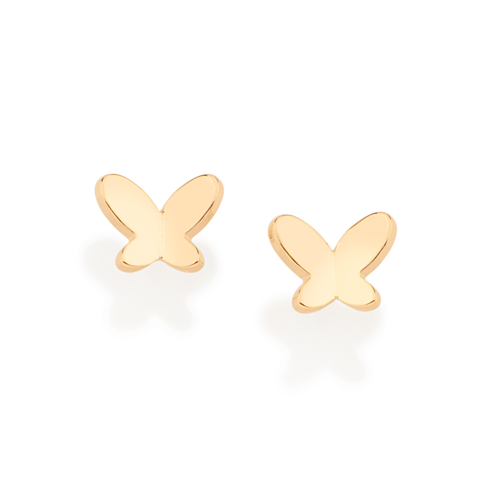 Brinco pequeno formato borboleta com asas curvadas. med 0,4 cm x 0,5 cm