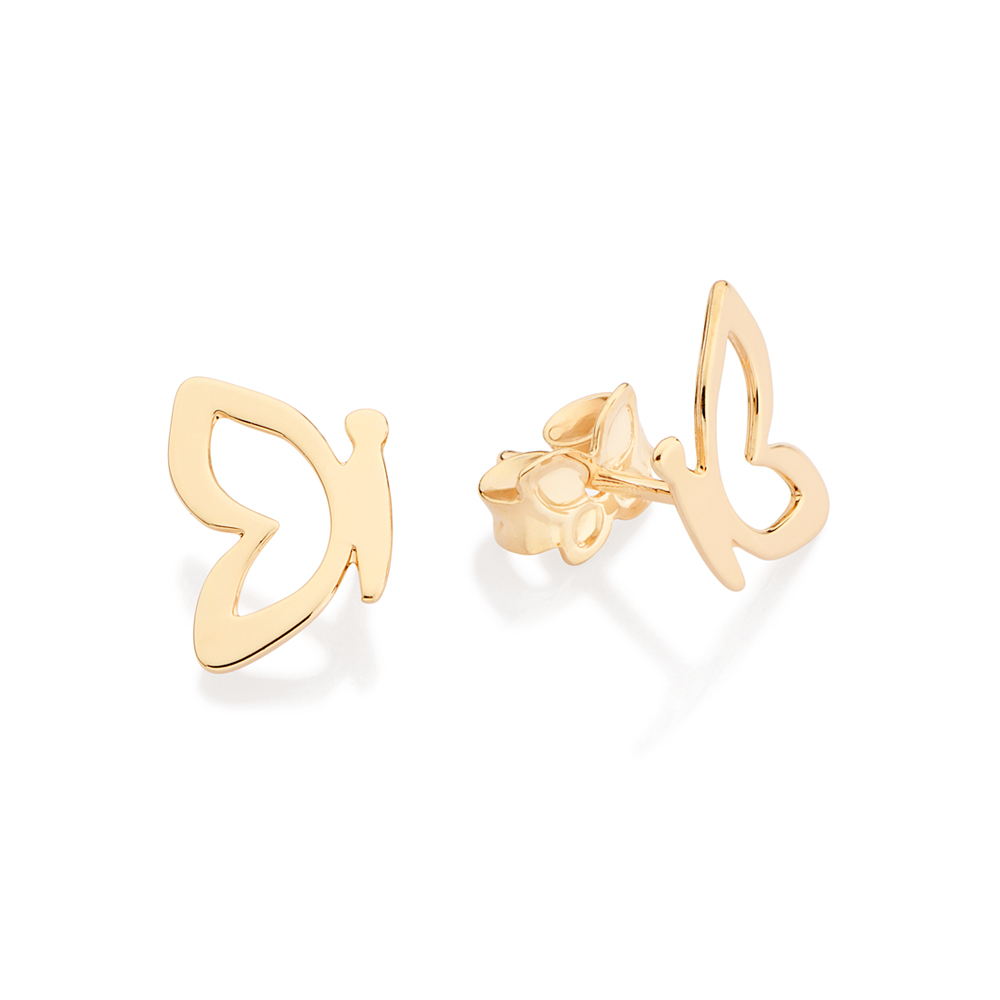 Brinco borboleta com asas vazadas. med. 1,10 cm x 0,70 cm.
