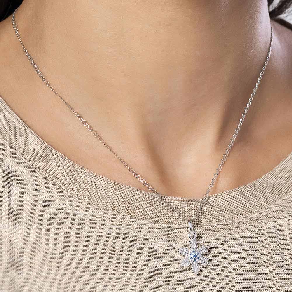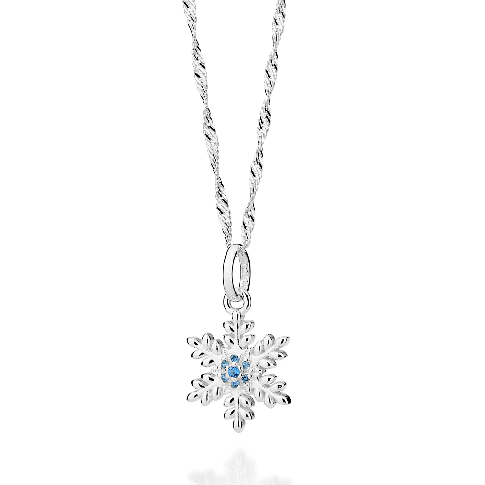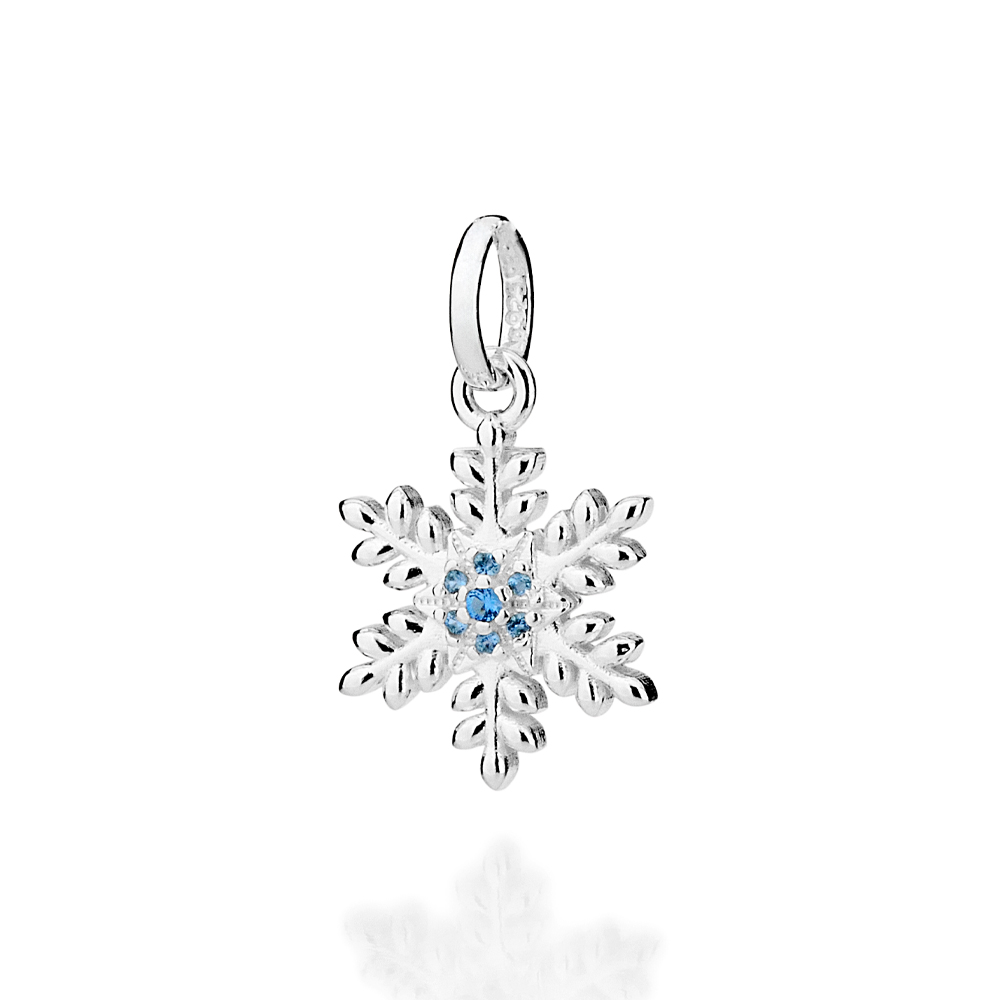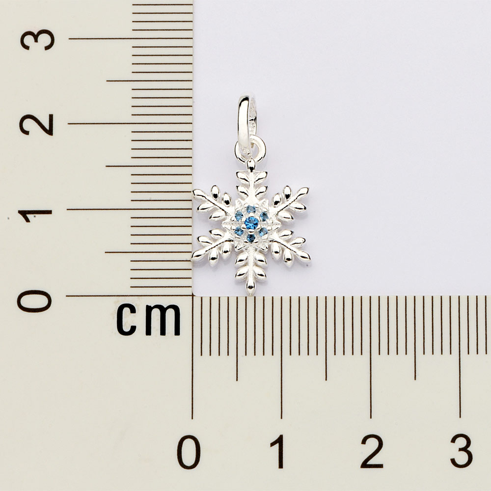 Pingente floco de neve cravejado por 6 zircônias de 1,0 mm e 1 zircônia de 1,50 mm. (frozen) med 2,3 cm x 1,3 cm (joia licenciada coleção disney).